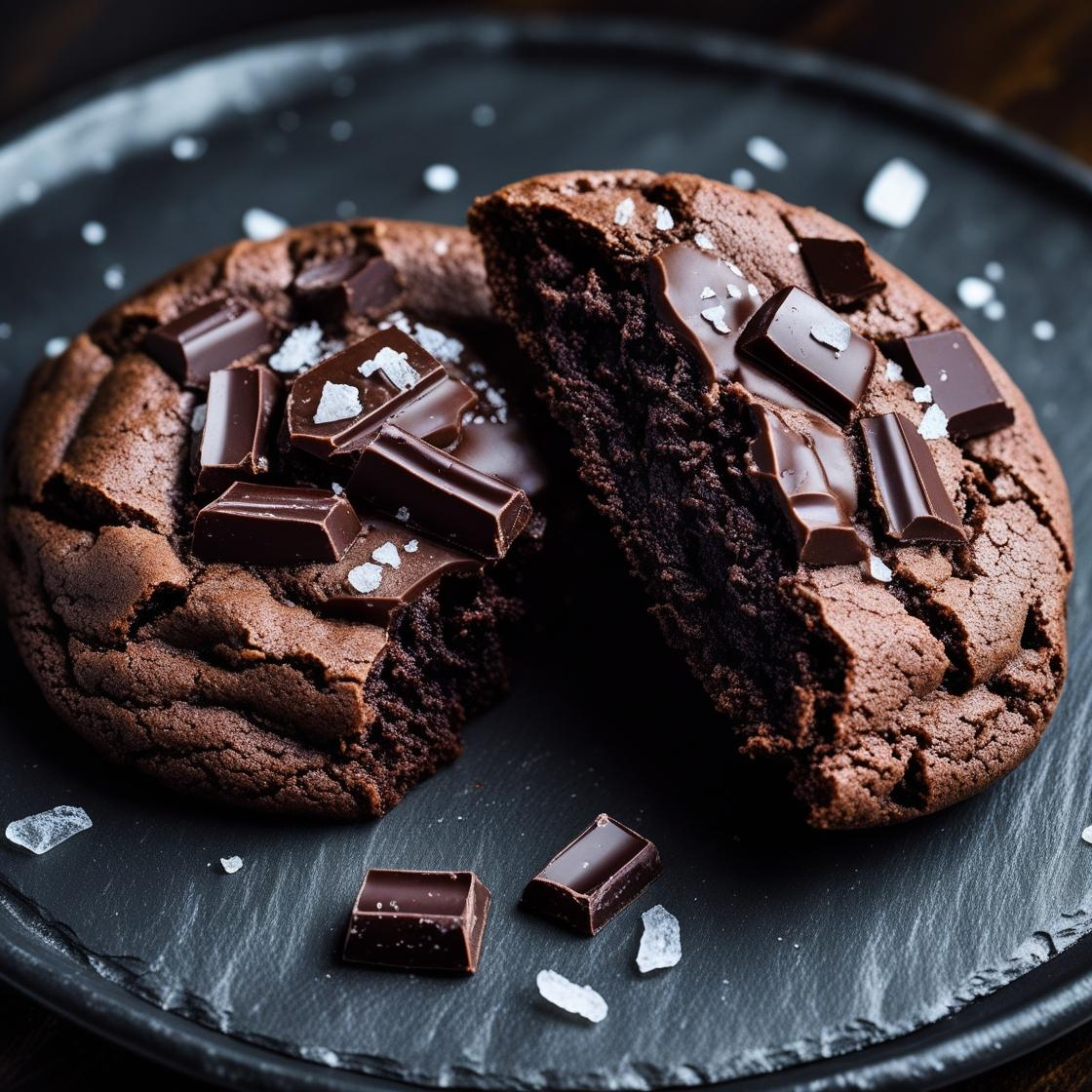Decadent dark chocolate cookie with sea salt flakes and rich cocoa.